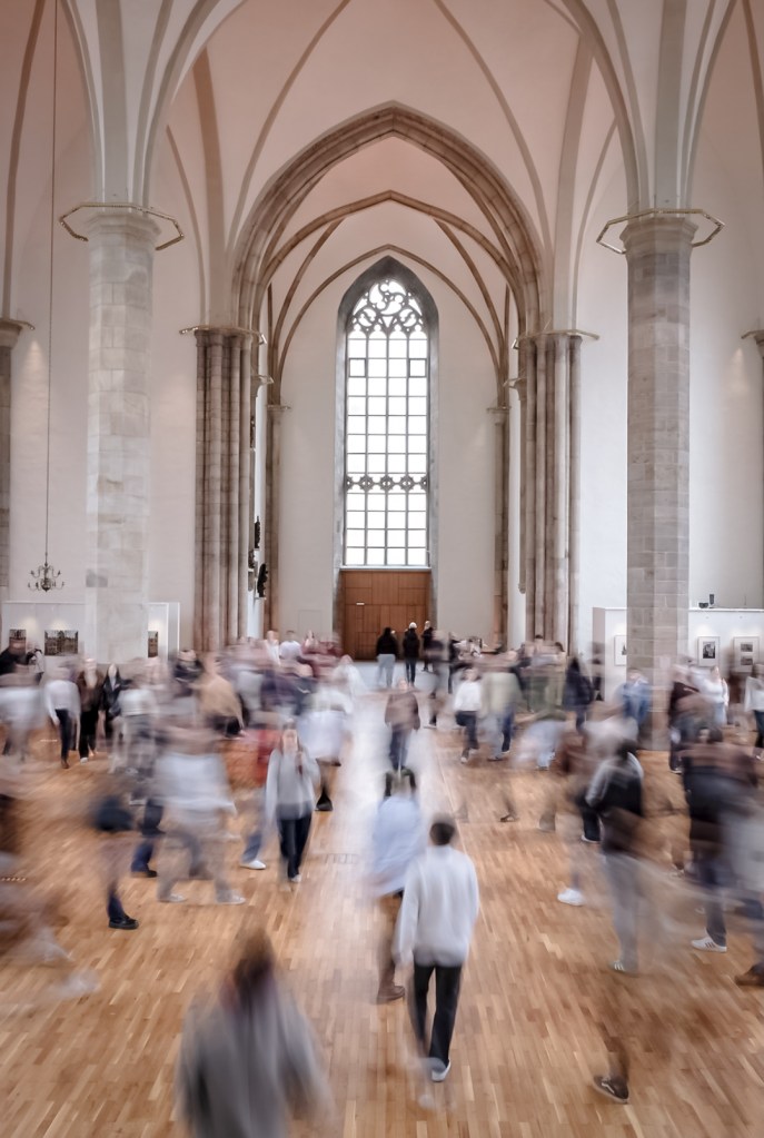 The initial exercise of the course „Einführung in das Entwerfen I“ lead our first year students to St. Petri in the center of Dortmund to explore the questions: How do we perceive space with our body and our senses? How does our perception of space change through our movement? How does our body interact with architectural space? Thank you for your excellent guidance, Eva Girzalsky! And thank you very much, St. Petri Stadtkirche, for hosting our large, strangely moving group of students.